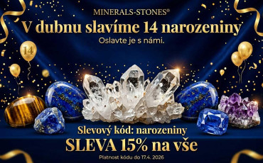V dubnu slavíme významný milník – MINERALS-STONES® funguje již 14 let. Od prvních kroků až po dnešní rozsáhlý e-shop nás provází jediné: vášeň pro přírodní minerály, drahokamy a jejich jedinečný příběh. Za tuto cestu vděčíme především vám – našim zákazníkům, sběratelům, investorům i milovníkům krásy přírody.