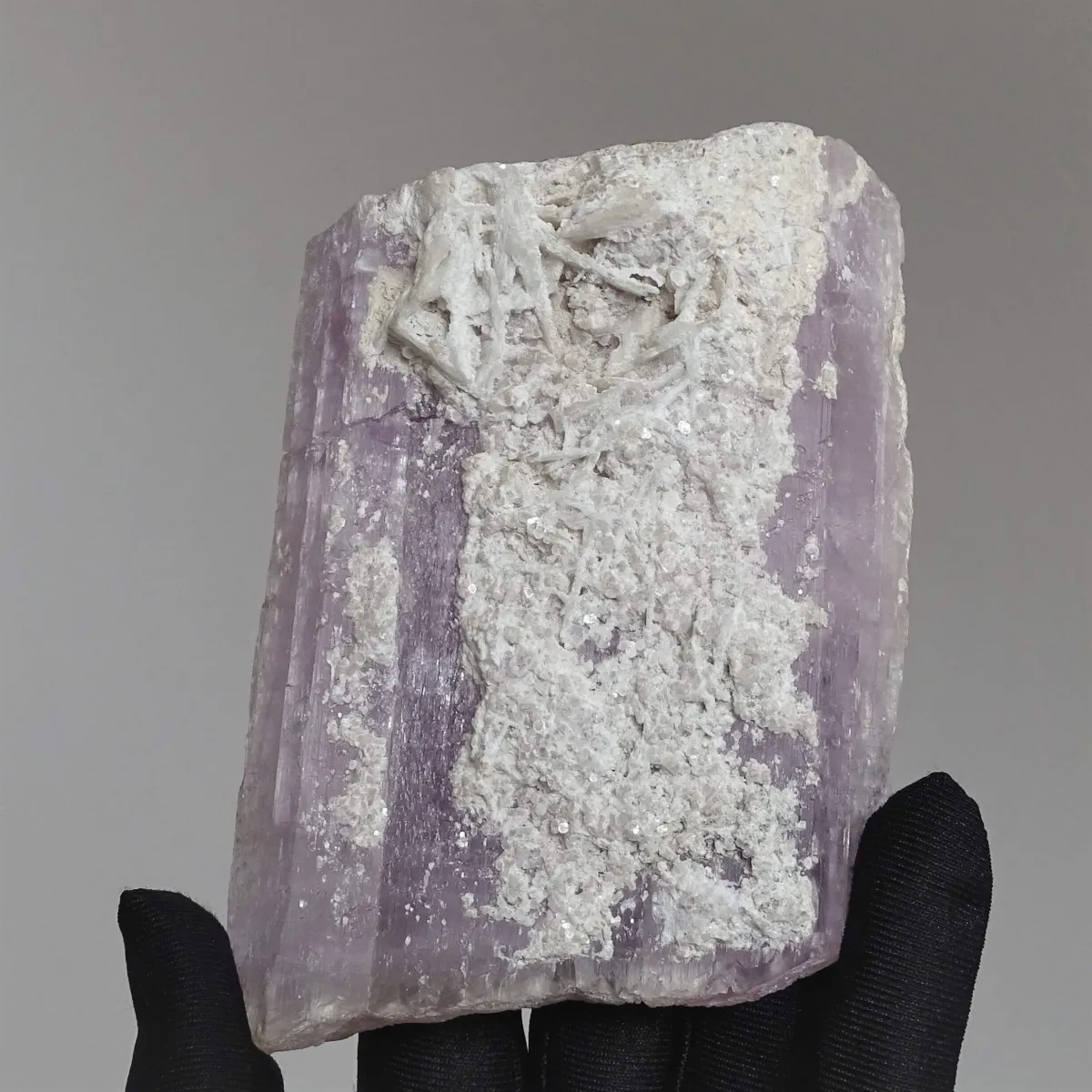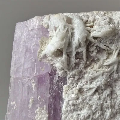 Kunzit - ein natürliches Rohmineral mit Albit, ein Sammelstück.